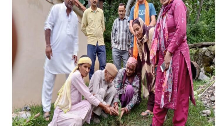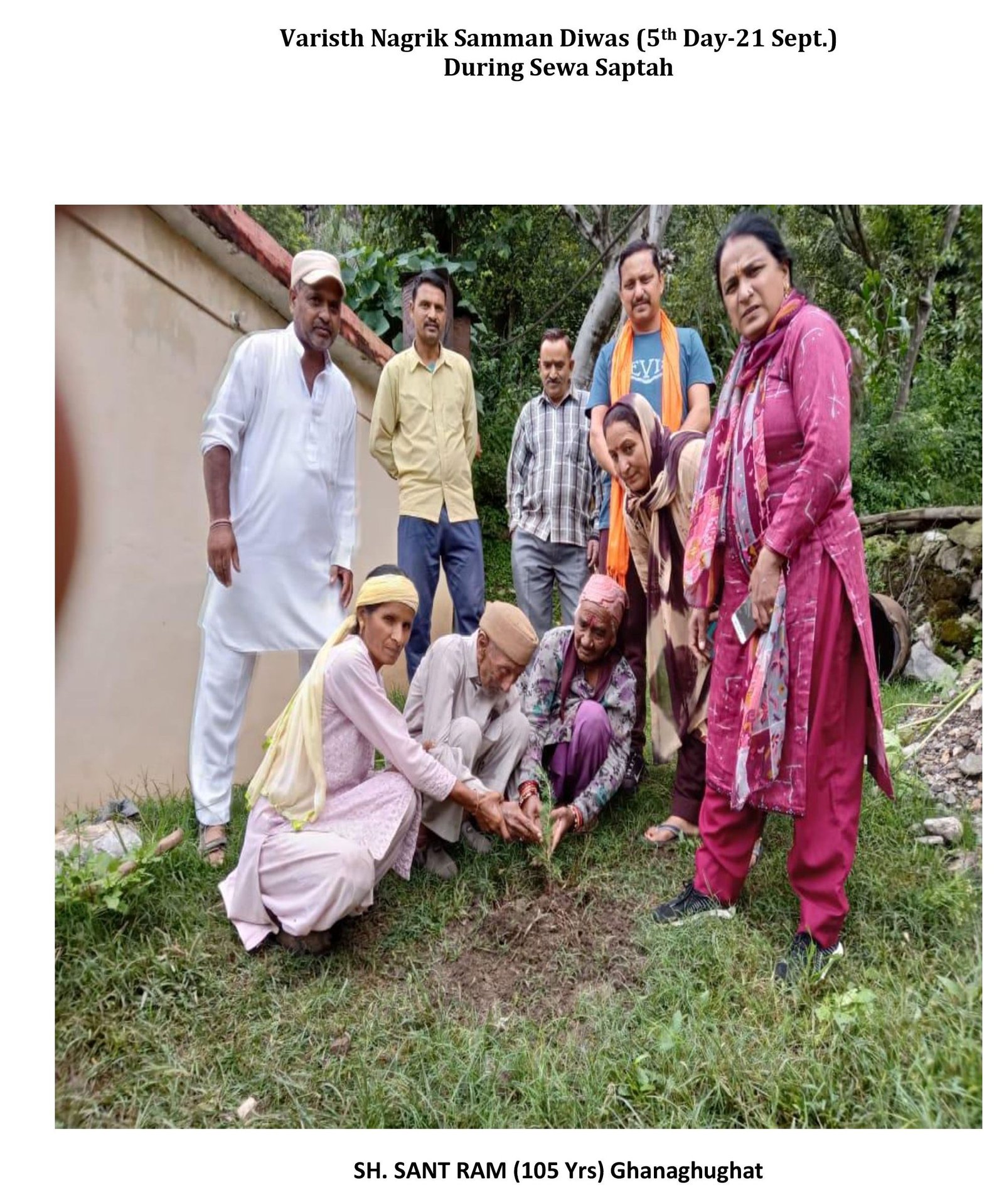 ग्राम पंचायत घनागुघाट के 105 वर्षीय बुजुर्ग संत राम तथा 90 वर्षीय रामदेई ने देवदार का पौधा रोपित किया
