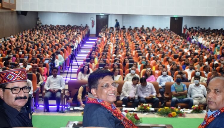 केन्द्रीय वाणिज्य एवं उद्योग तथा कपड़ा मंत्री पीयूष गोयल ने आज कुल्लू के अटल सदन में हिमाचल प्रदेश के पूर्ण राज्यत्व के स्वर्णिम जयंती वर्ष के उपलक्ष्य में सेवा व समर्पण अभियान के अंतर्गत हस्तशिल्प एवं हथकरघा कारीगरों के साथ एक संवाद कार्यक्रम को बतौर मुख्य अतिथि संबोधित करते हुए यह घोषणा की। मुख्यमंत्री जय राम ठाकुर ने कार्यक्रम की अध्यक्षता की।