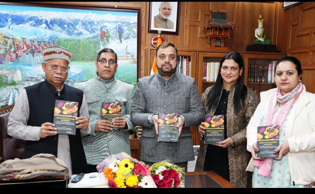 राज्यपाल शिव प्रताप शुक्ल ने आज राजभवन में परागण करने वाले कीटों पर वैज्ञानिक शोध पर आधारित ‘‘इन्सेक्ट पॉलिनेटरस डॉयवर्सिटी’’ पुस्तक का विमोचन किया। यह पुस्तक हिमाचल प्रदेश विश्वविद्यालय शिमला के जैव विज्ञान विभाग की सहायक प्रोफेसर डॉ. नीलम कुमारी, डॉ.वाई.एस. परमार औद्योनिकी एवं वानिकी विश्वविद्यालय नौणी बागवानी अनुसंधान केंद्र मशोबरा की वैज्ञानिक डॉ.संगीता शर्मा तथा हिमाचल प्रदेश विश्वविद्यालय शिमला के डॉ.नितेश कुमार एवं डॉ. हीरेन्द्र सिंह बनियाल द्वारा लिखी गई है।