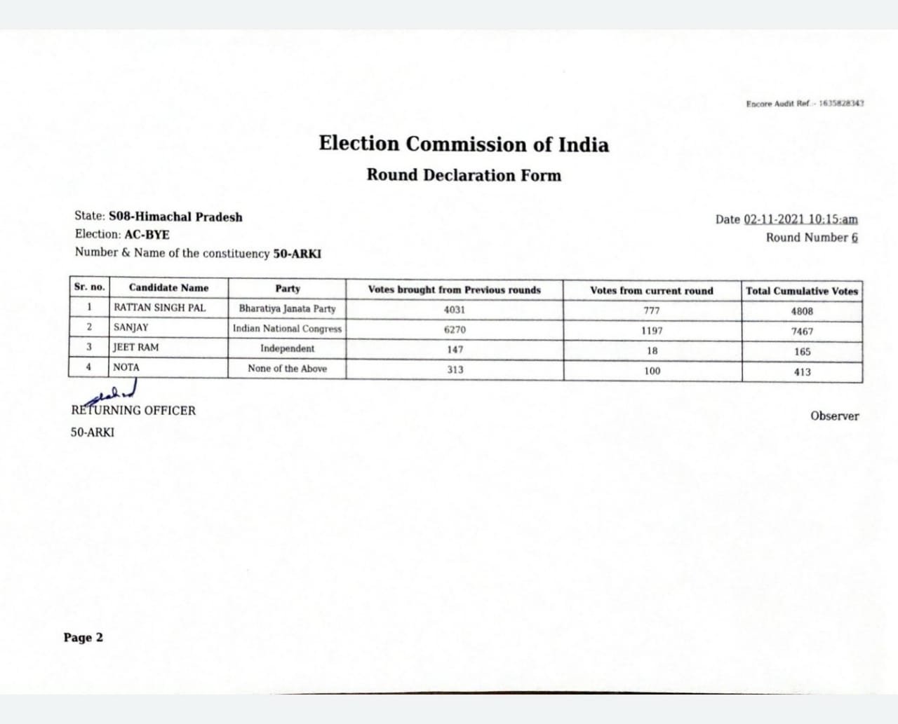 50-अर्की विधानसभा क्षेत्र के 06 राउन्ड पूरे
