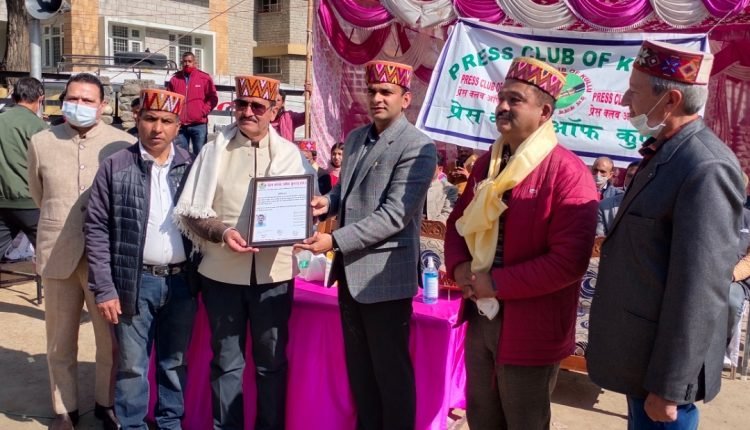 उपायुक्त आशुतोष गर्ग ने सोमवार को ऐतिहासिक ढालपुर मैदान में प्रेस क्लब द्वारा आयोजित एक सम्मान समारोह में डीपीआरओ को सम्मानित किया